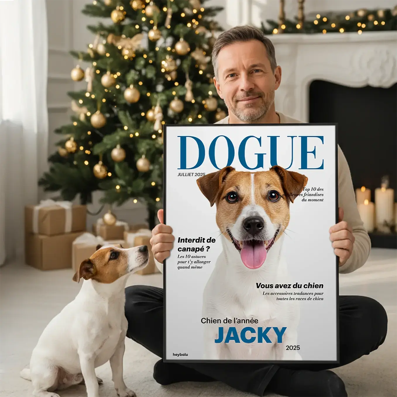 Concevez l’affiche exactement comme vous le souhaitez : choisissez le titre du magazine, ajoutez le nom de votre chien et sélectionnez l’année du numéro. Votre chien mérite d’être à l’honneur.