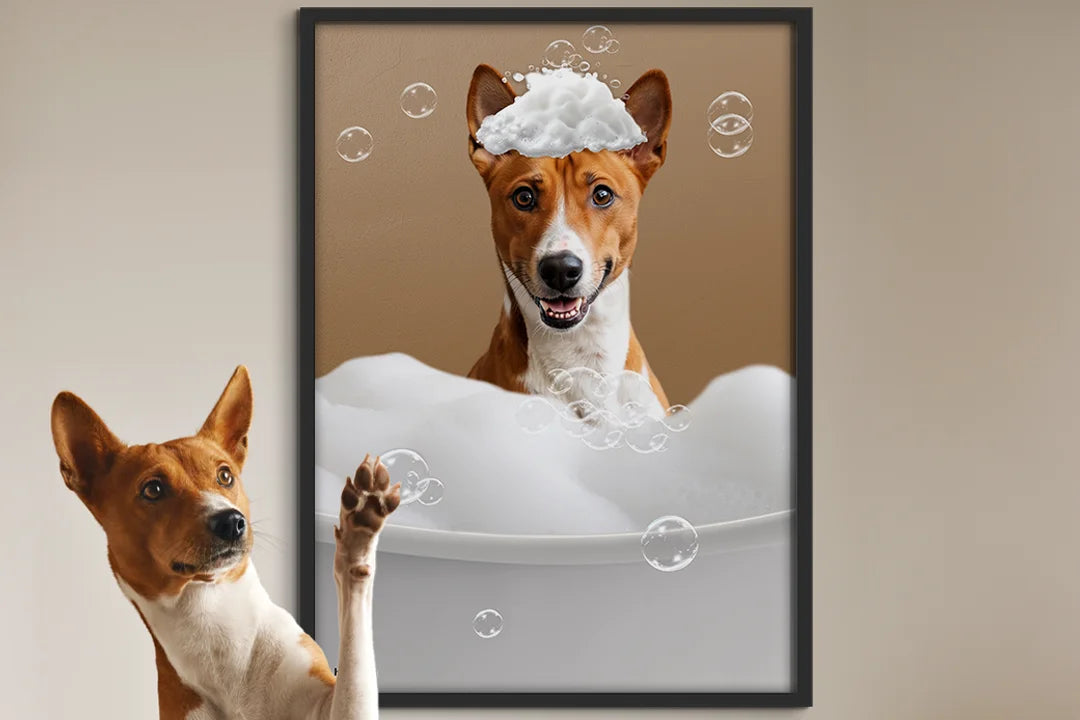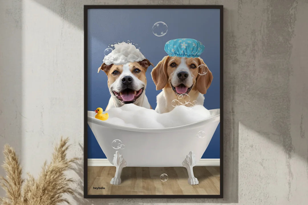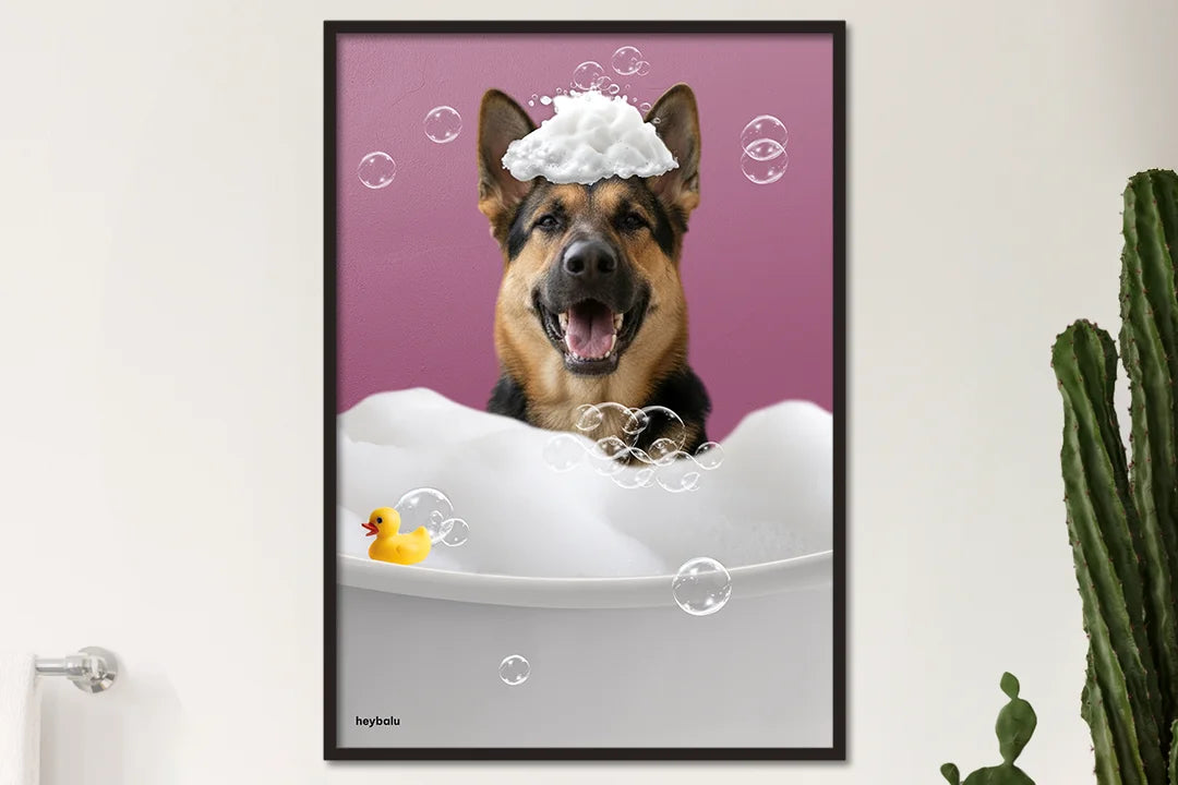 Transformez votre salle de bain en une oasis de bien-être avec une affiche amusante et touchante de votre animal, chien comme chat. Nous l'isolerons parfaitement et le placerons avec amour dans un bain moussant. Le résultat sera une œuvre d'art qui vous fera sourire à chaque fois que vous la regarderez.