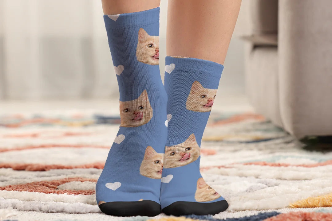 Ajoutez une touche personnelle à vos chaussettes en y imprimant la photo de votre chat. Grâce à ce design unique, vous gardez votre compagnon à vos côtés, où que vous alliez.