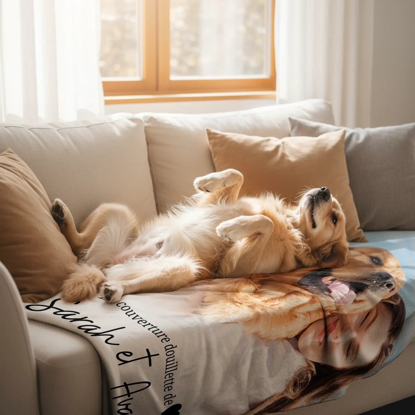 Donnez une touche personnelle à votre couverture en imprimant une photo de votre compagnon. Une belle façon de montrer votre lien spécial et de souligner le caractère unique de votre ami à quatre pattes.