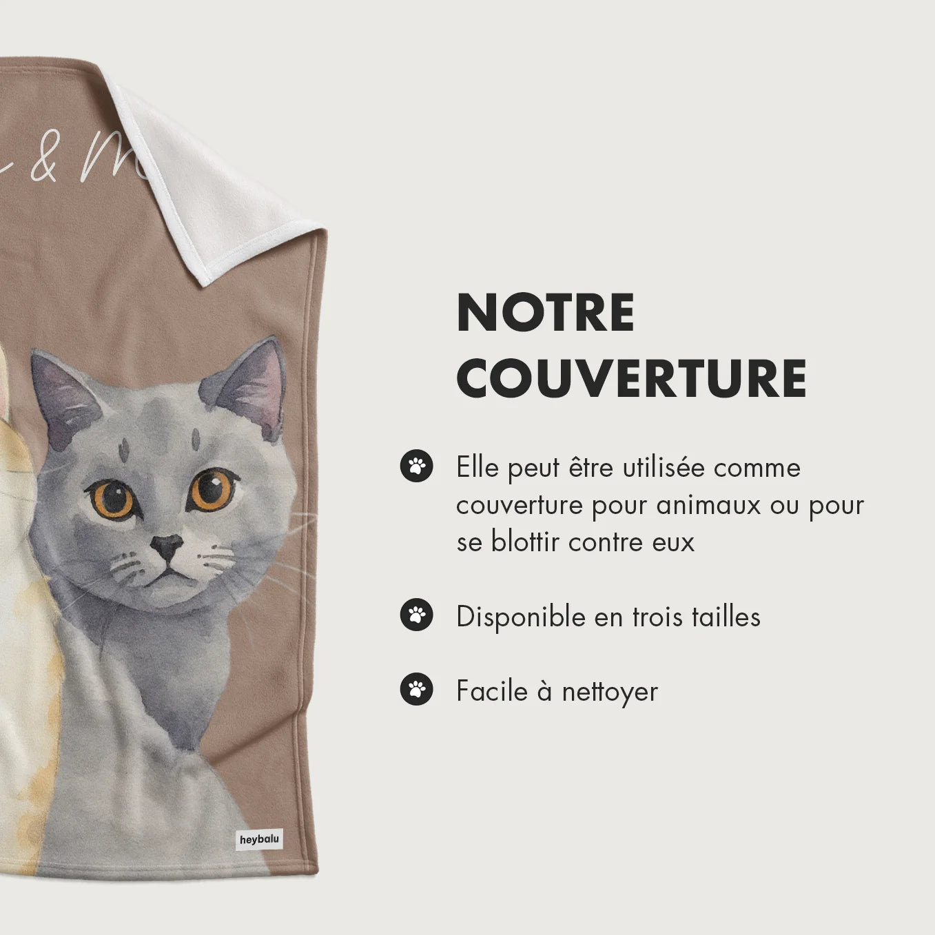Cette couverture personnalisée associe confort et tendresse pour célébrer le lien qui vous unit à votre chat. Elle est idéale pour se blottir sur le canapé ou offrir un coin de repos tout doux à votre félin. Sa texture moelleuse et sa belle qualité en font un indispensable pour transformer chaque moment partagé en parenthèse chaleureuse.