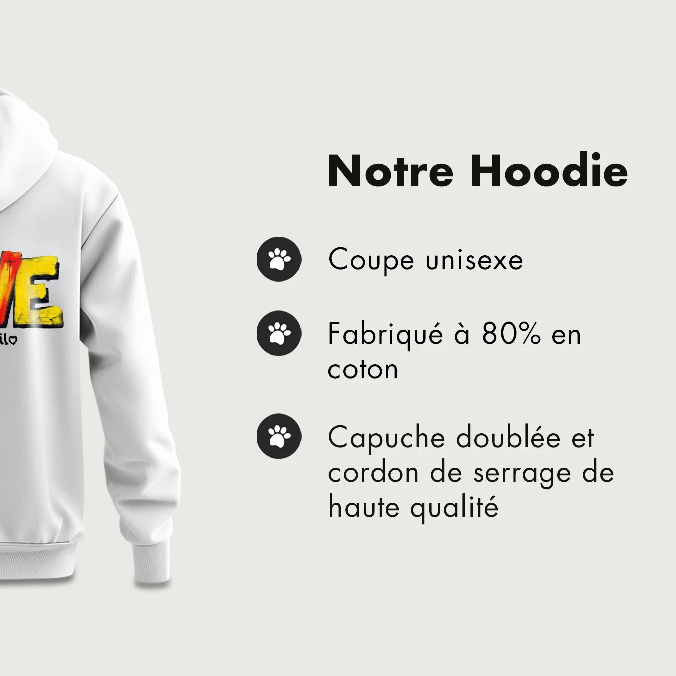 Sweat à Capuche Personnalisé « LOVE » avec Votre Animal