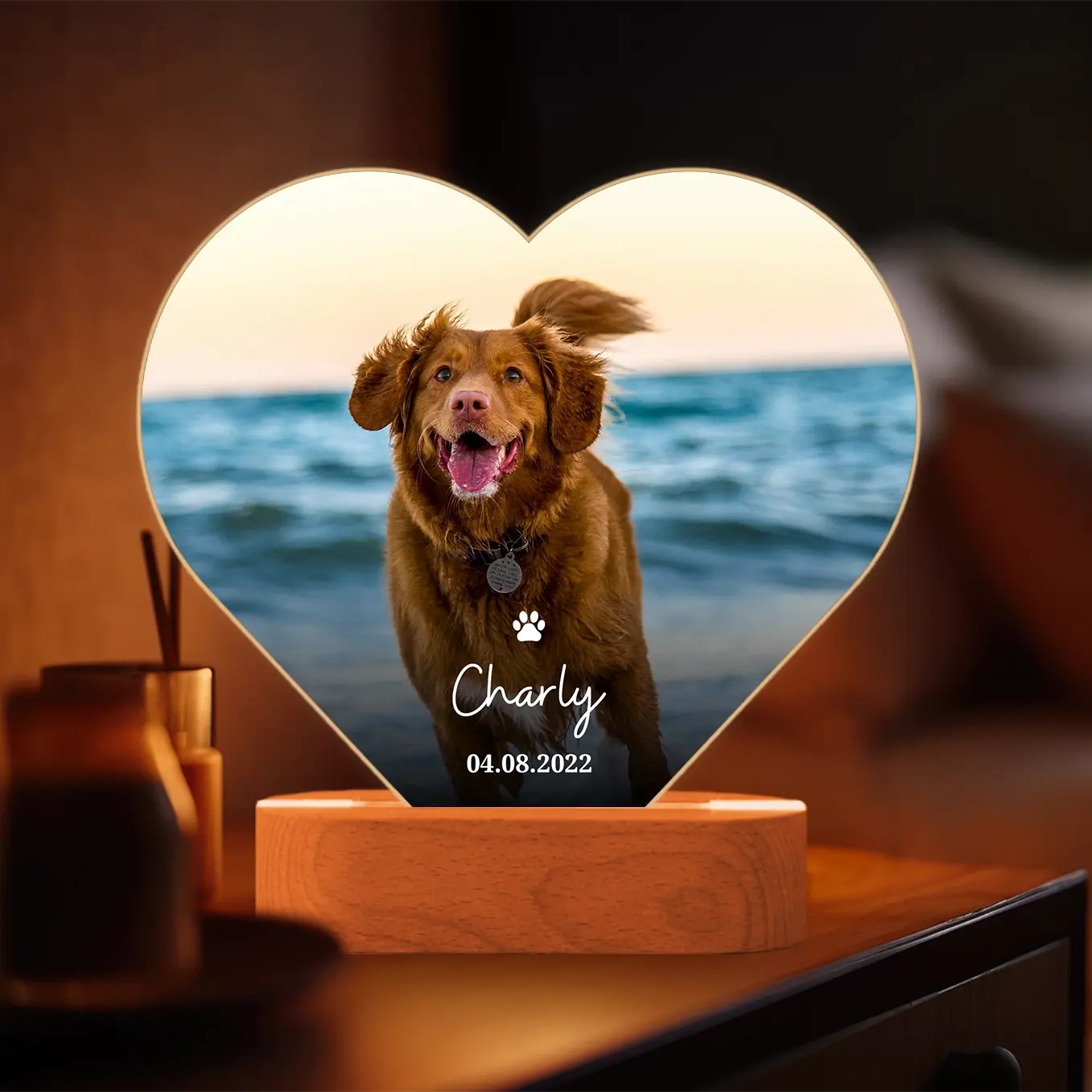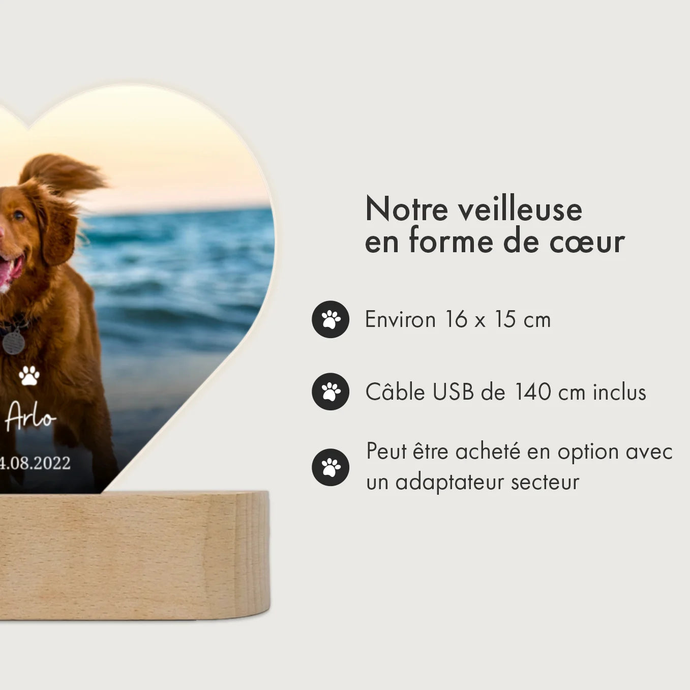 Lampe acrylique en coeur personnalisée « Votre animal » avec photo