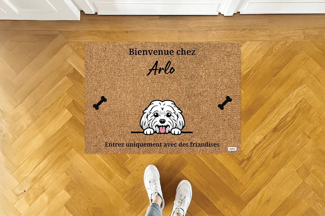 Procurez-vous un paillasson très spécial avec votre petit protégé ! Avec ses dimensions de 50 × 70 cm, c'est la taille parfaite pour être placée devant la porte d'entrée ou pour être utilisée dans l'appartement. Son design unique avec votre animal de compagnie en fera un véritable accroche-regard.