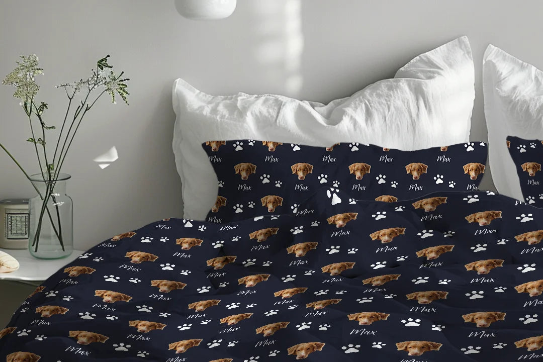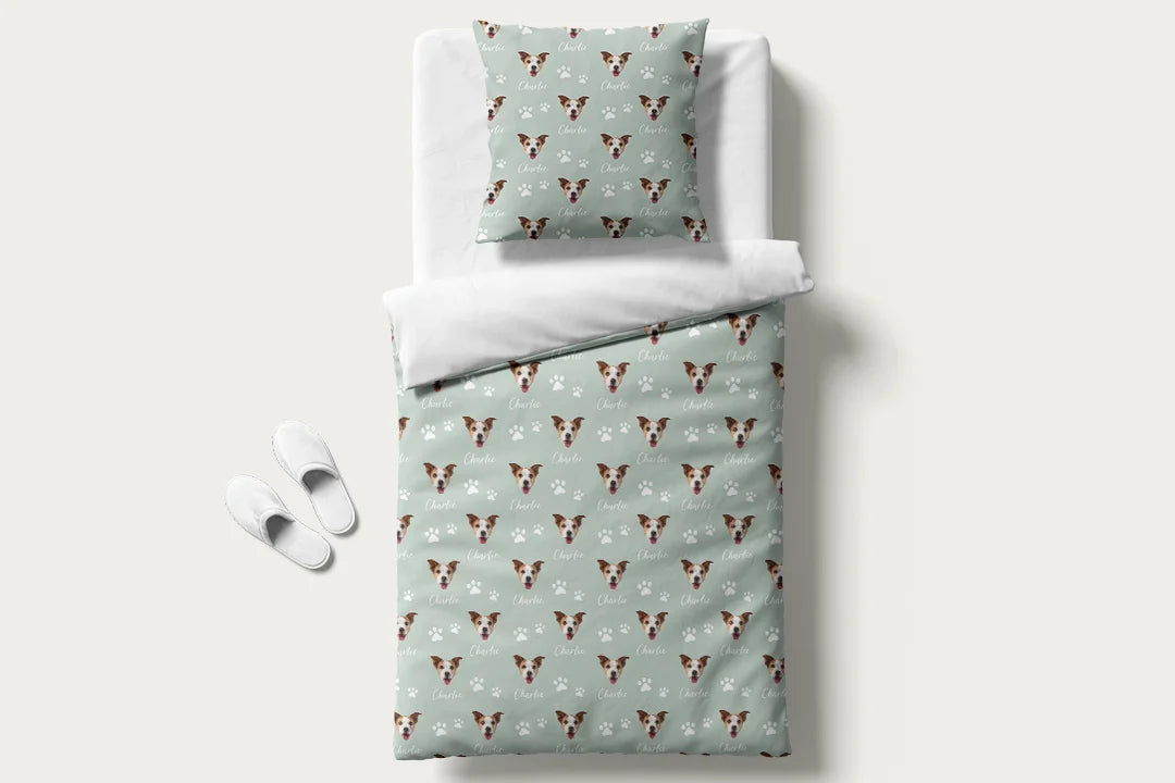 Transformez votre lit en un souvenir plein de tendresse en y ajoutant la photo et le nom de votre animal de compagnie. Notre linge de lit 100 % satin de coton vous garantit un sommeil confortable tout en faisant sourire à chaque regard.