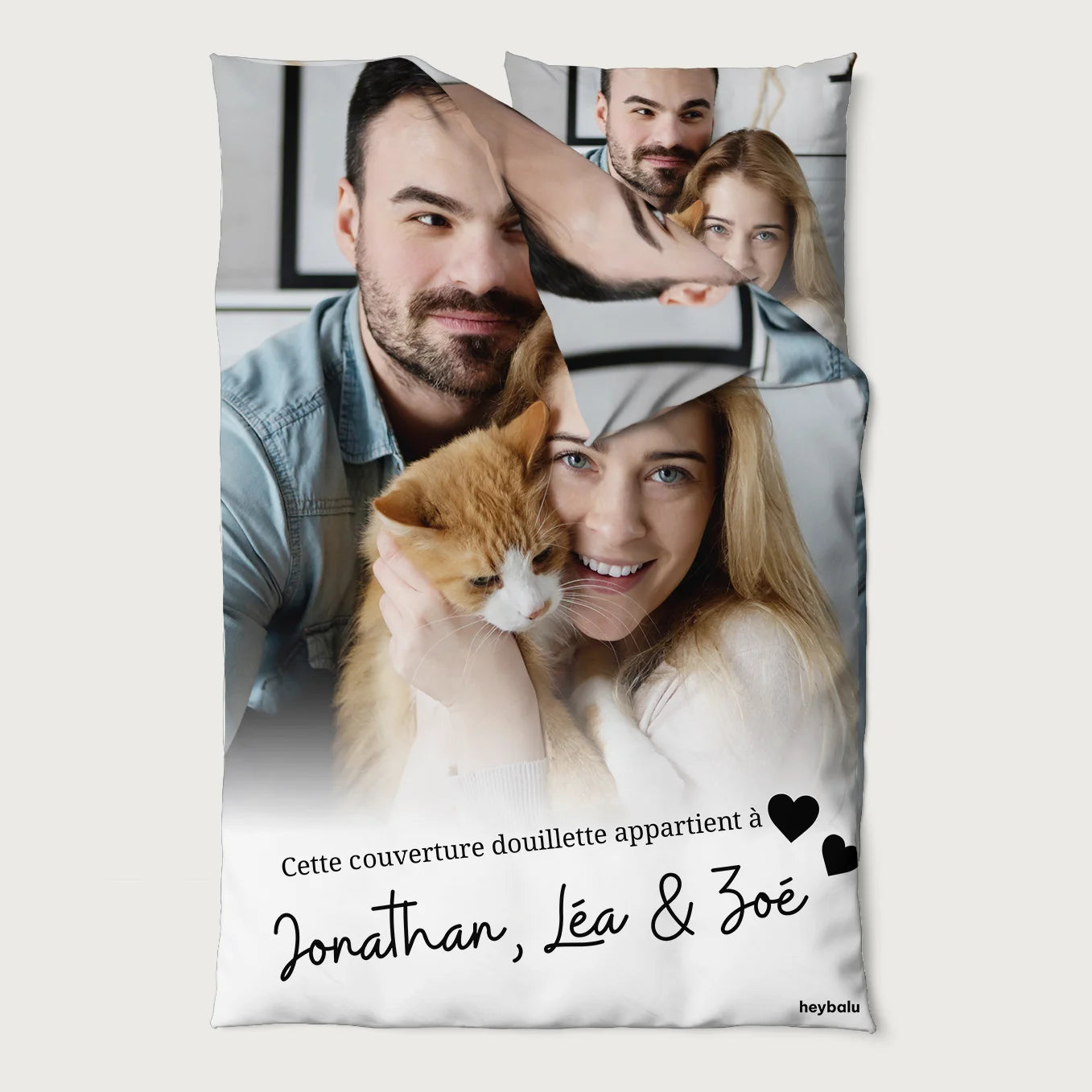 Parure de lit personnalisée en satin de coton « Photo et texte »