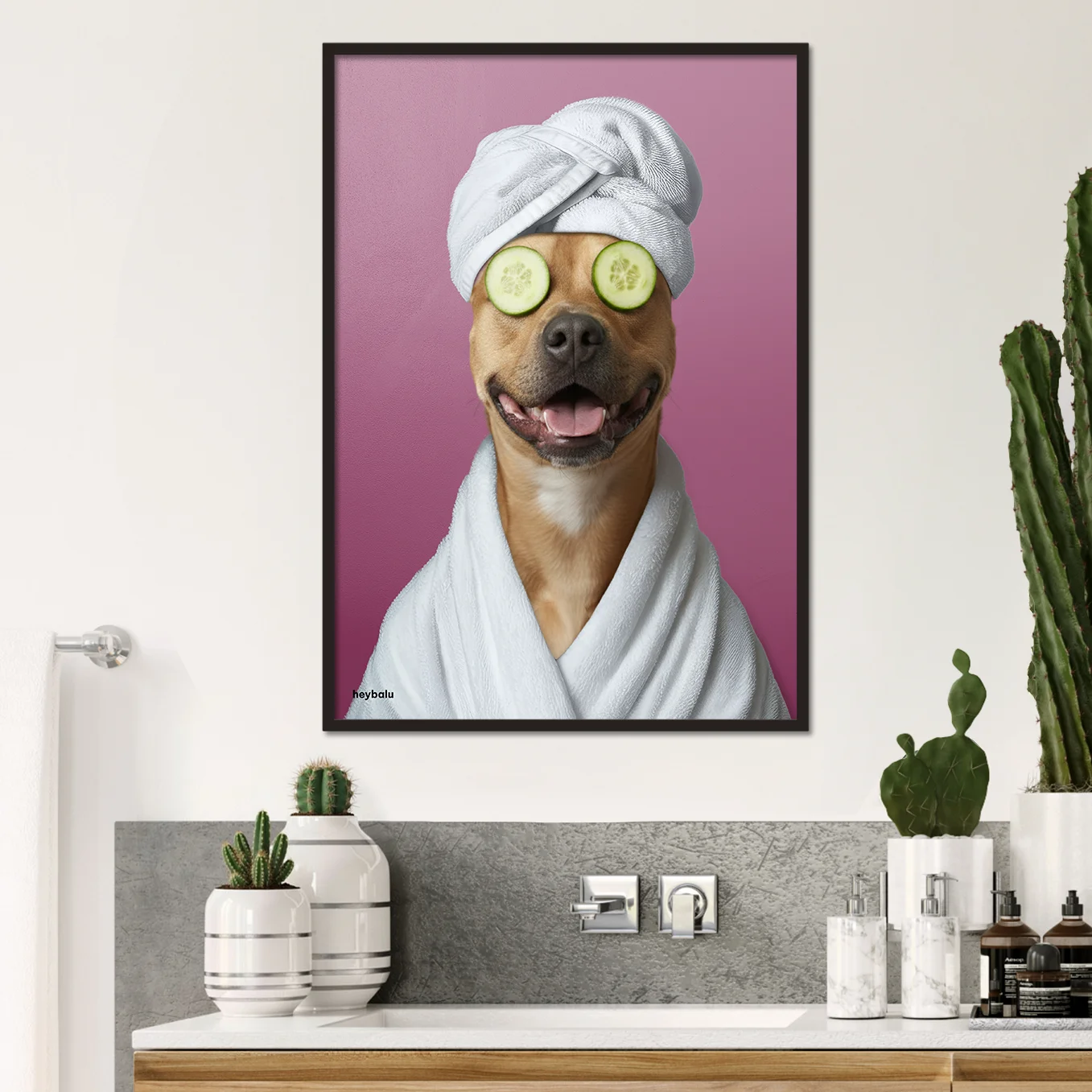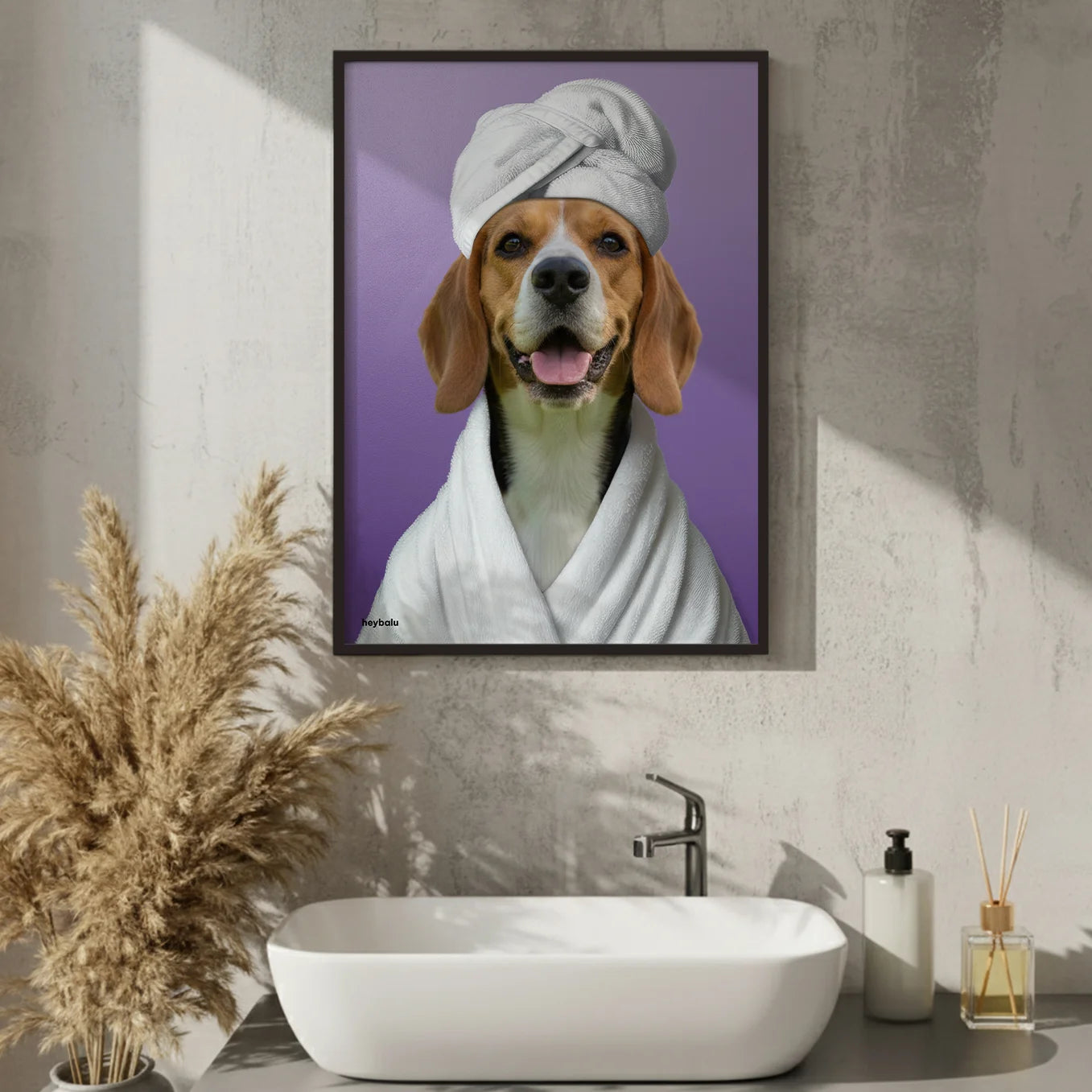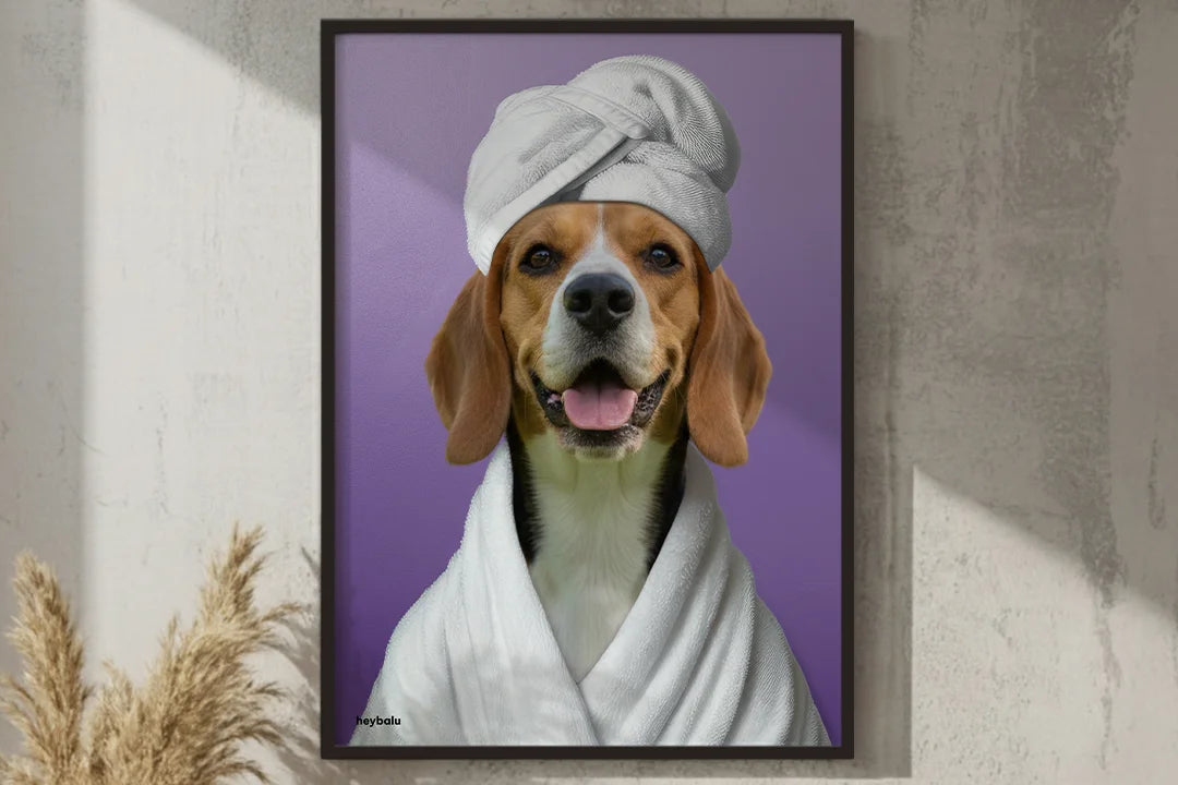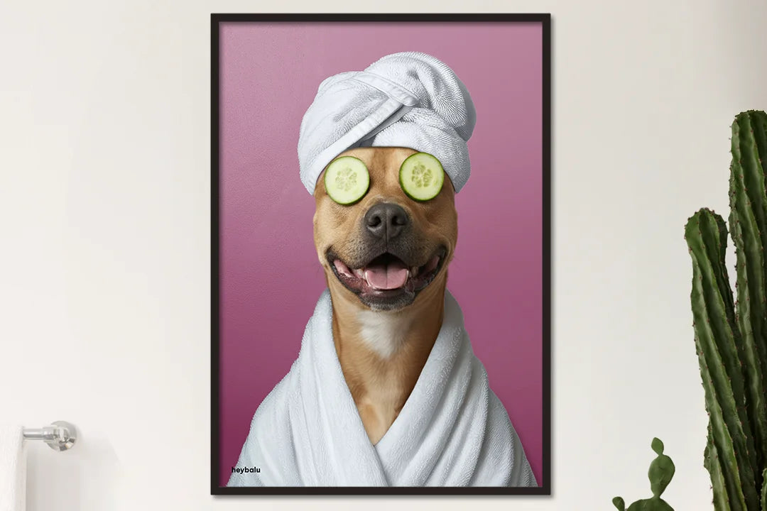 Cette affiche est la décoration idéale pour votre salle de bain ou votre espace bien-être. Imprimée sur un papier de haute qualité aux couleurs vives, elle capture parfaitement les moments de détente et de plaisir de votre animal. Une excellente façon de lui témoigner votre amour.