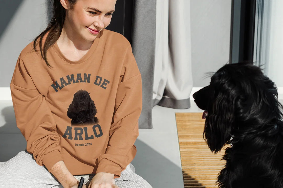 Avec notre pull, vous ne portez pas seulement un vêtement, mais vous montrez également fièrement votre lien spécial avec votre chien. Le design personnalisé fait du pull un compagnon émotionnel qui raconte des histoires. Chaque détail est réalisé avec cœur et soin pour refléter votre personnalité.