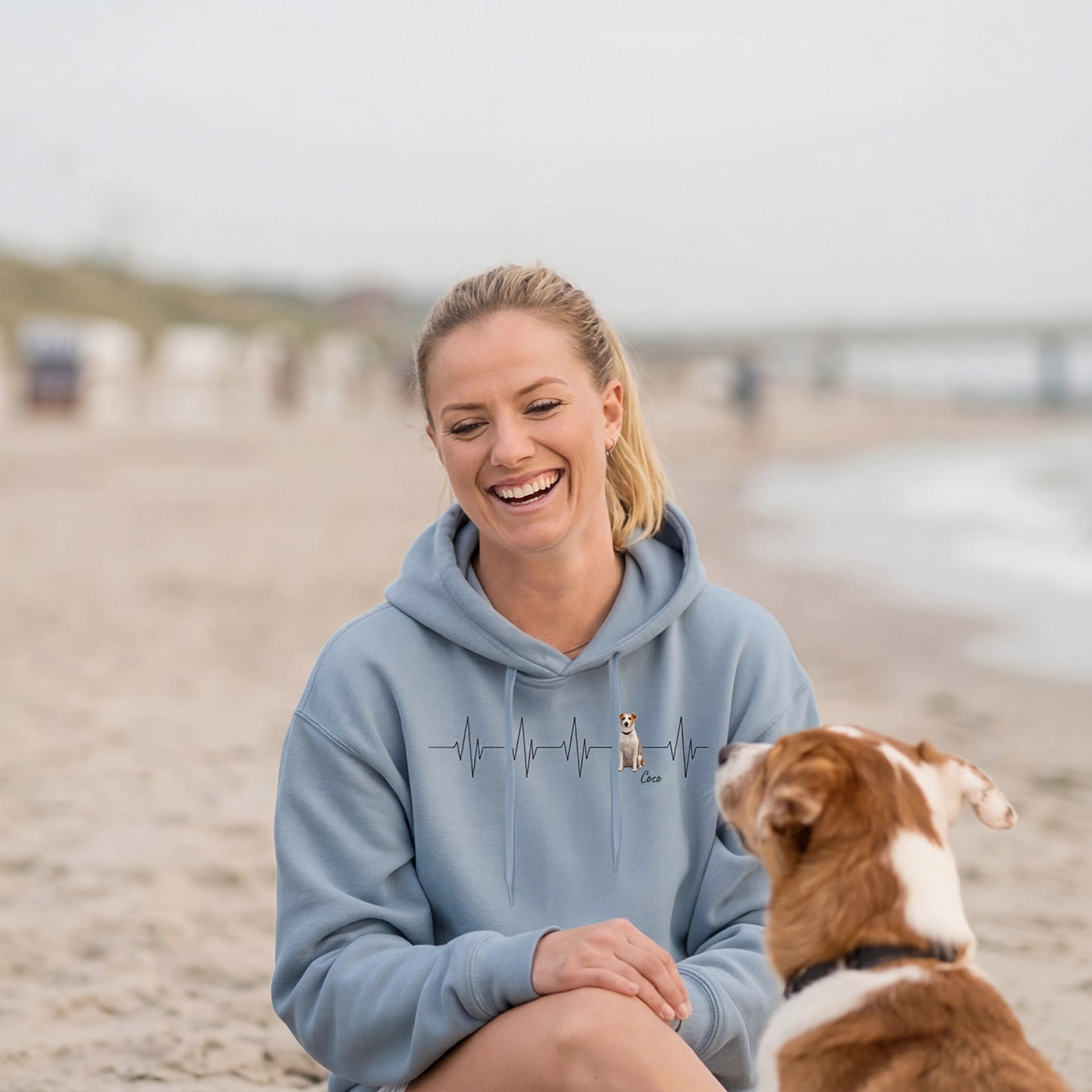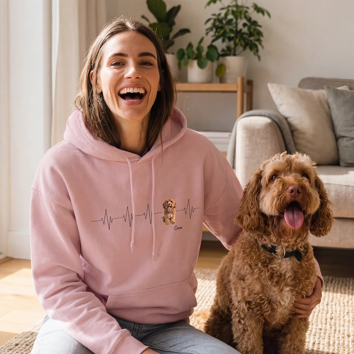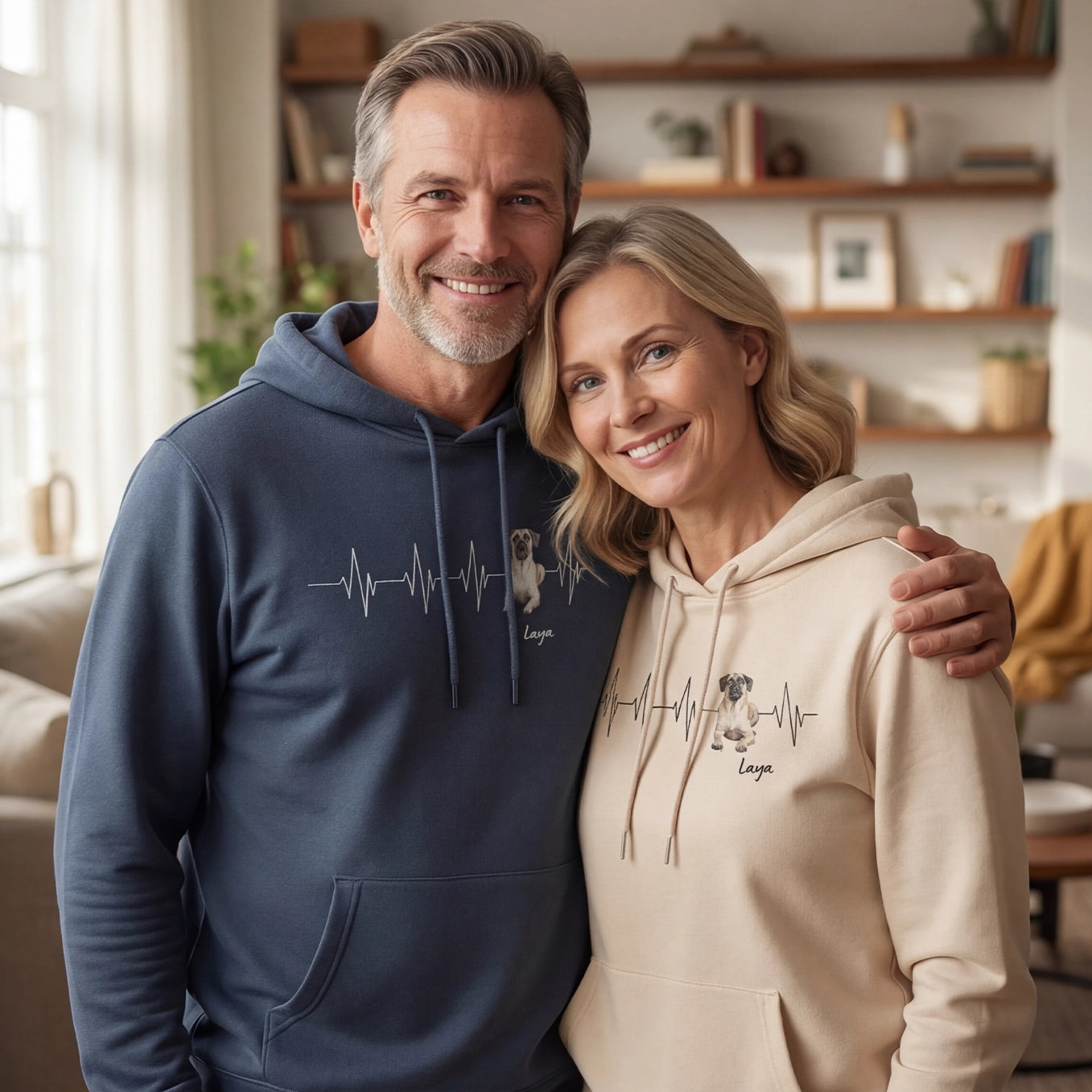 Il y a des cadeaux utiles. Et puis il y a ceux qui touchent vraiment. Ce sweat à capuche personnalisé avec le battement de cœur de votre animal, c'est le genre de cadeau qu'on garde longtemps — et qu'on porte encore plus longtemps.