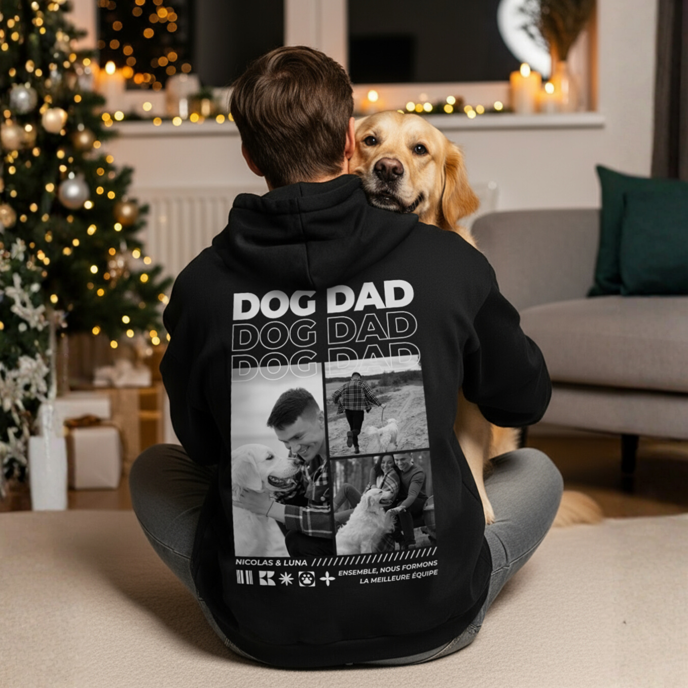 Offrez à votre “Papa de toutou” un sweat doux et plein d’amour. Personnalisé avec ses plus belles photos, c’est un cadeau unique qui fera sourire chaque amoureux des chiens à Noël… et bien après.