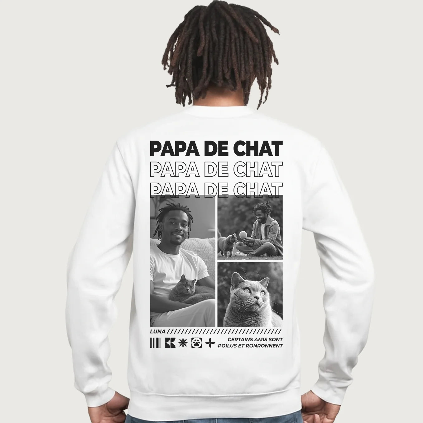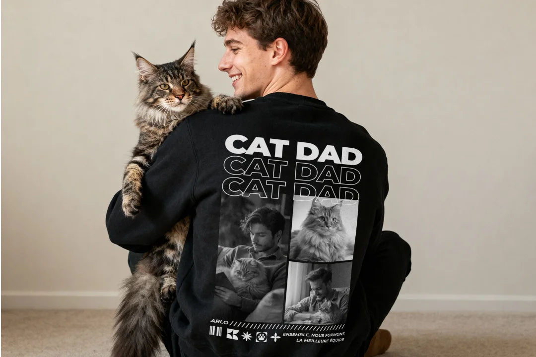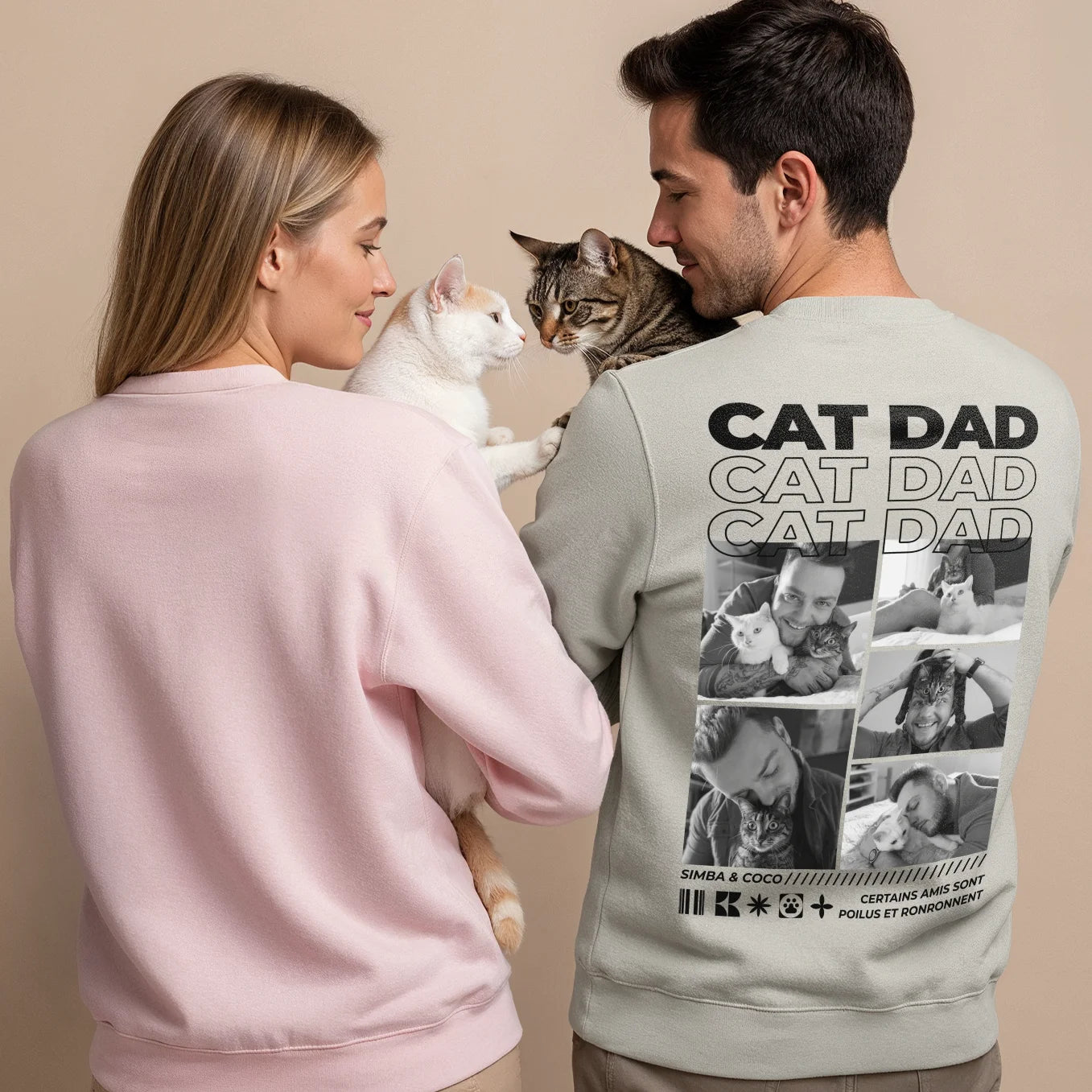 Notre sweat-shirt est composé à 80 % de coton et est agréablement doux à l'intérieur. Choisissez parmi une variété de couleurs et de tailles pour correspondre à votre style. C'est le cadeau idéal pour vous-même ou pour un véritable « papa de chat » de votre entourage.