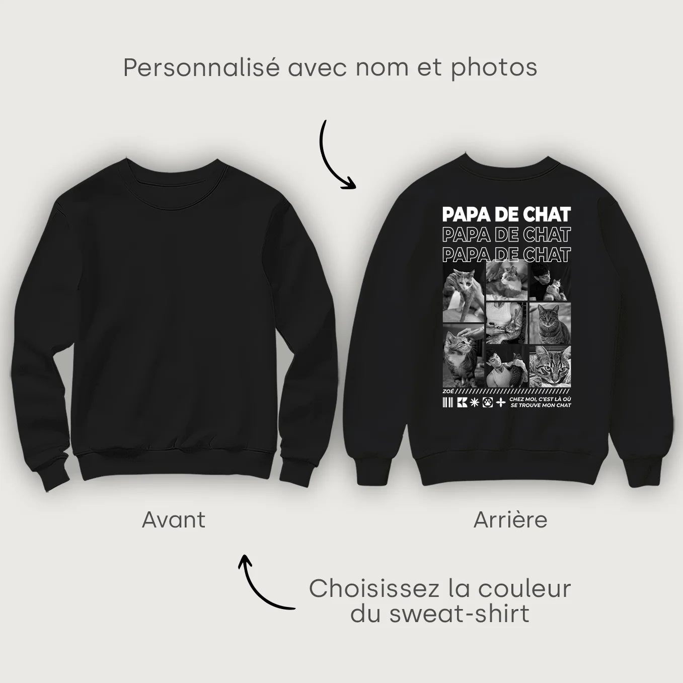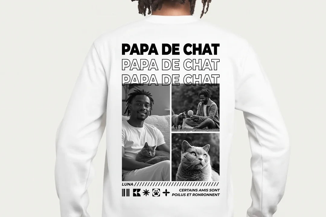 Ce sweat-shirt personnalisé est bien plus qu'un simple vêtement : c'est un véritable hommage au lien privilégié qui vous unit à votre animal. Avec le nom de votre choix, vos photos préférées et une phrase personnalisée, chaque exemplaire est unique.