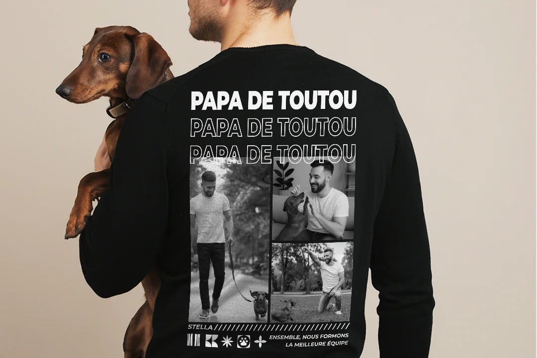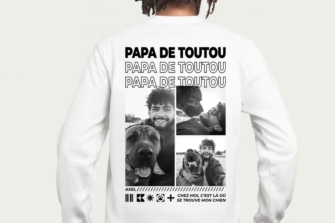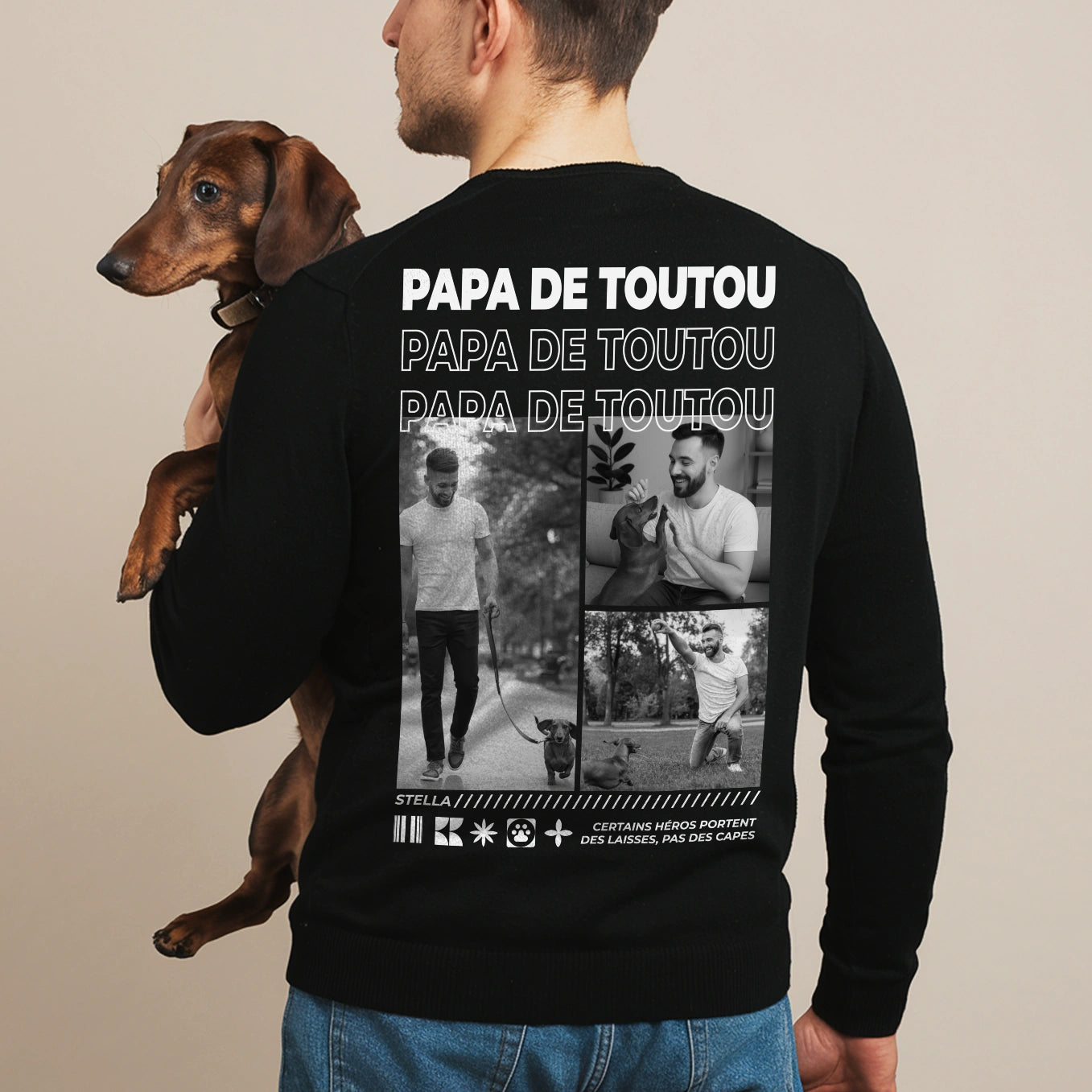 Offrez à un « papa de toutou » un pull unique, plein d’émotion. Personnalisé avec ses plus beaux souvenirs, c’est le cadeau parfait pour Noël, un anniversaire ou simplement pour dire « je t'aime » à votre façon.
