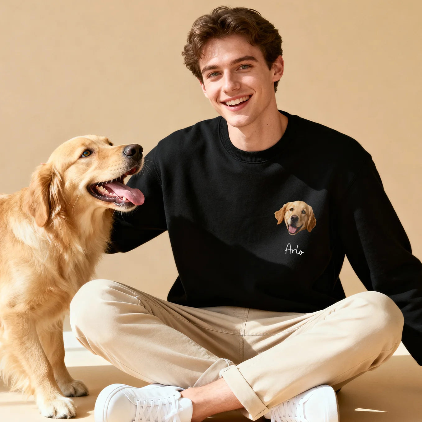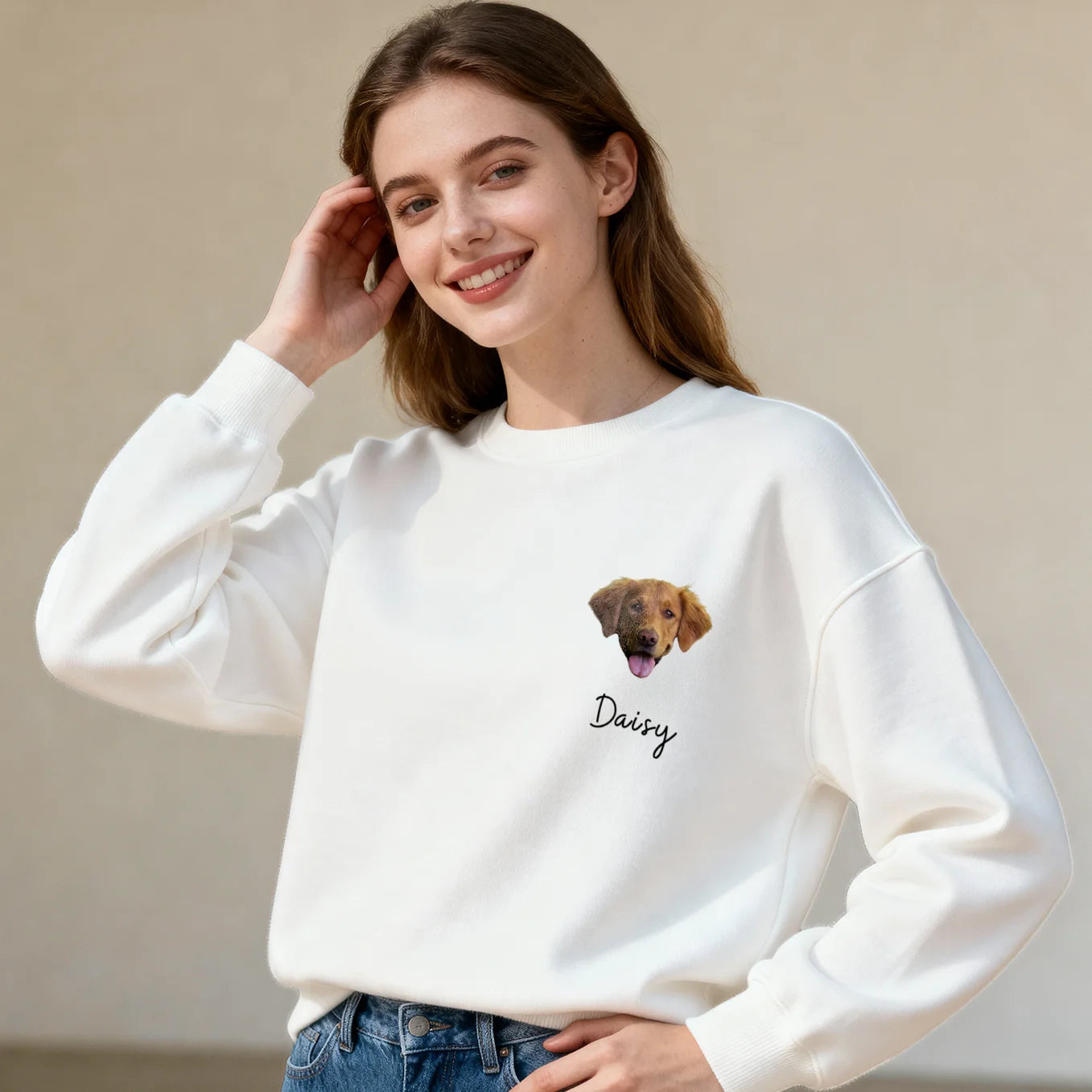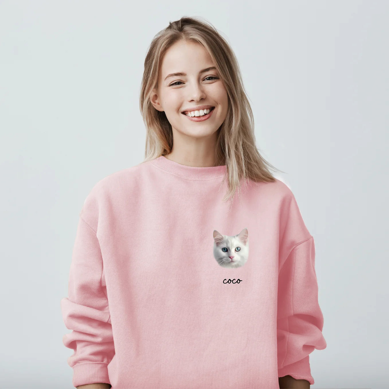 Téléchargez une photo et admirez votre animal préféré sur votre sweat-shirt. Vous pouvez ajouter jusqu'à trois portraits avec leur nom. Créez un vêtement unique et personnalisé.