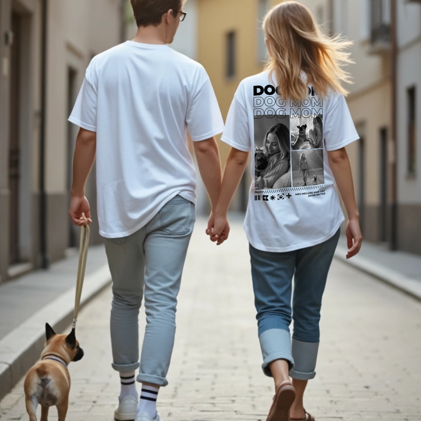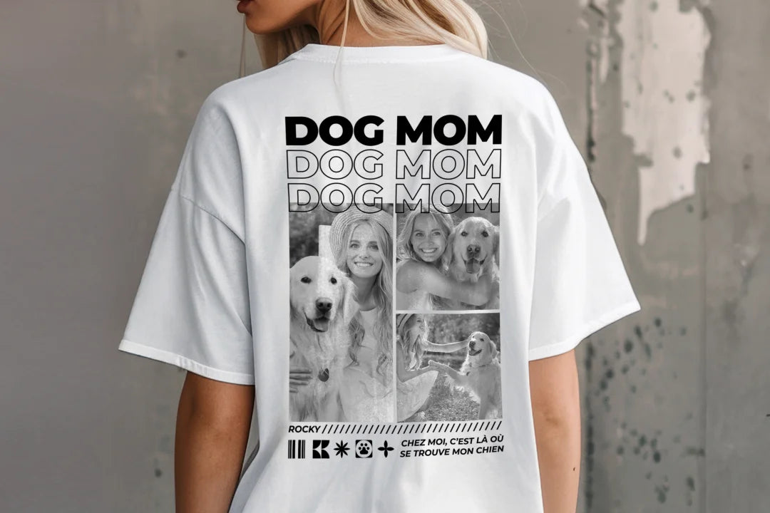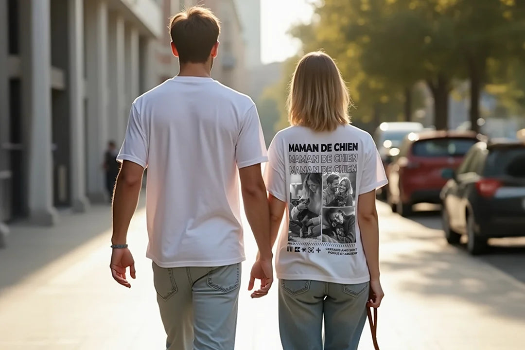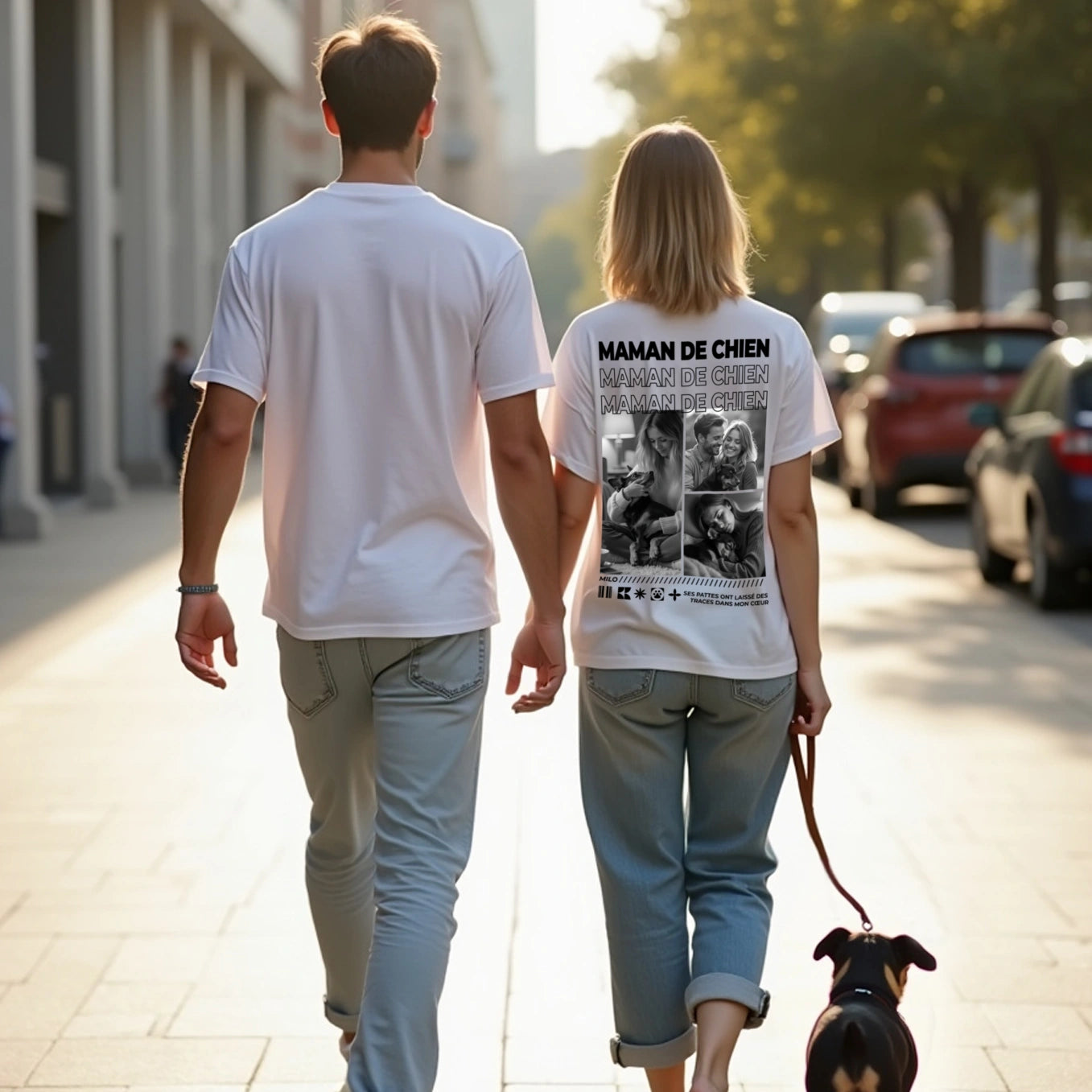 Immortalisez vos plus beaux instants ensemble sur un t-shirt personnalisé. Un hommage plein d’affection, parfait pour celles qui partagent tout avec leur chien.