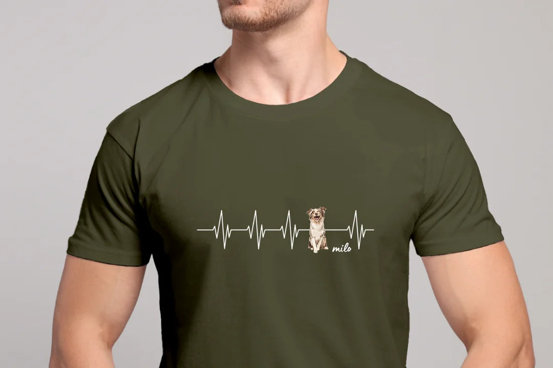 Créez un T-shirt unique avec le motif "battement de cœur". Il montre le lien spécial avec l'animal et constitue le cadeau de Noël personnel parfait.